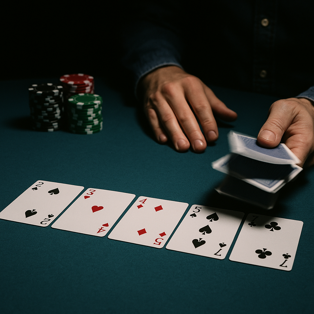 The most common snowing pattern, known as the “Gentleman’s Snow,” involves taking a single card on the first draw, then standing pat on the second draw after missing, continuing to bet aggressively throughout. This approach typically targets late position openers who likely hold rough one-card draws. Players execute this strategy most effectively when holding hands with strong blocker effects—pairs of eights or nines, trips, or other holdings that reduce the likelihood of opponents having strong hands.
